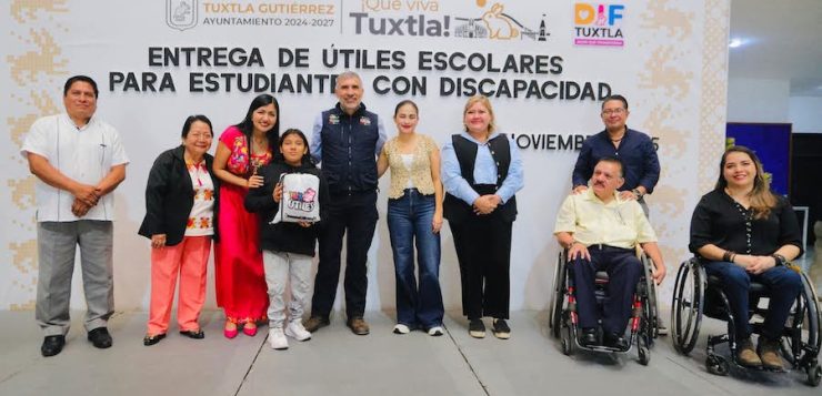 El presidente municipal de Tuxtla Gutiérrez, Angel Torres, encabezó la entrega de 104 paquetes de útiles escolares a estudiantes con discapacidad, como parte del programa “TUX ÚTILES”, reafirmando el compromiso por impulsar acciones que fortalezcan el bienestar y la inclusión en la capital chiapaneca.