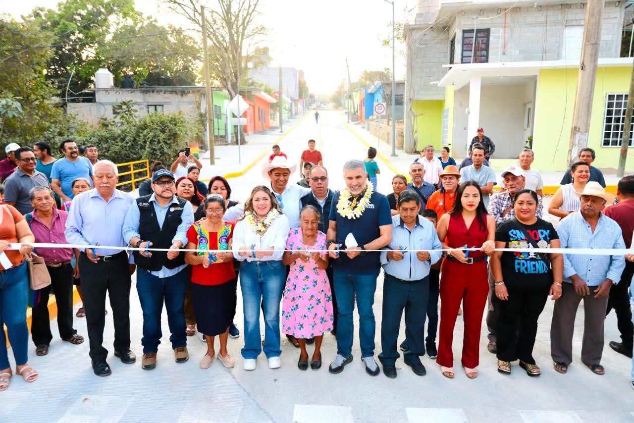 El presidente municipal Angel Torres, acompañado de su esposa Mercedes Ortiz y de vecinas y vecinos, inauguró la pavimentación integral de la avenida 5a Sur, entre las calles 4a y 6a Poniente, en el ejido Copoya, una vialidad más del programa Calles Felices que está llegando a las colonias de la capital.