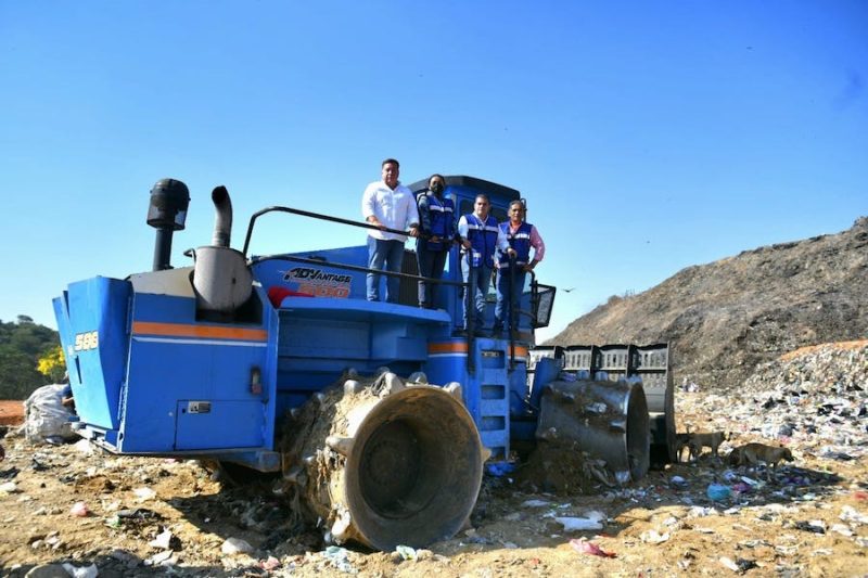 Asimismo, se dio a conocer el uso de maquinaria especializada para la compactación organizada de los residuos, destacando la operación de un compactador tipo “pata de cabra”, con una capacidad de compactación de 35 toneladas por centímetro cuadrado, lo que permite garantizar una estabilidad de hasta 800 kilogramos por metro cúbico de residuos confinados.