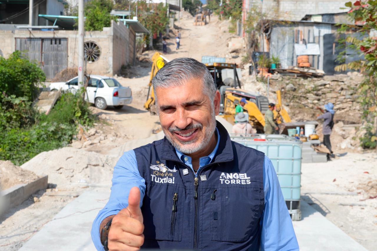 Tras una visita de seguimiento a los trabajos de pavimentación de más de 530 metros lineales en la colonia La Condesa, el presidente Angel Torres, junto a vecinas y vecinos, constató que la obra registra un avance del 60%, misma que progresa de acuerdo con los tiempos programados.