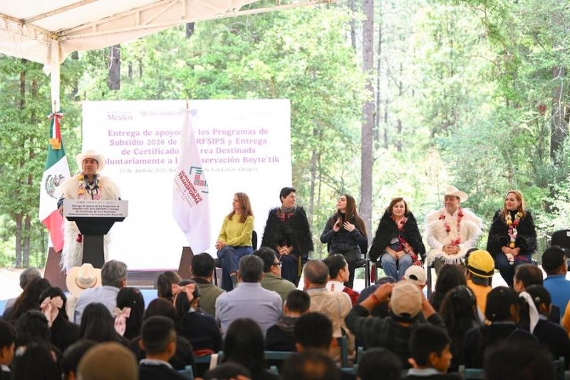 En el ejido La Albarrada, municipio de San Cristóbal de Las Casas, el gobernador Eduardo Ramírez Aguilar, junto al titular de la Comisión Nacional de Áreas Naturales Protegidas (Conanp), Pedro Álvarez Icaza Longoria, encabezó la entrega de apoyos de los programas de subsidio 2026 de la Dirección Regional Frontera Sur, Istmo y Pacífico Sur (DRFSIPS), así como del certificado que reconoce al territorio Boyte’tik como Área Natural Protegida, en la categoría de Área Destinada Voluntariamente a la Conservación.