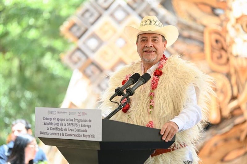 Durante su intervención, el mandatario reconoció al Gobierno de México que encabeza la presidenta de la República, Claudia Sheinbaum Pardo, por el respaldo y el trabajo coordinado para garantizar los pagos por servicios ambientales a quienes realizan una labor comunitaria en favor de la protección y conservación de los recursos naturales.