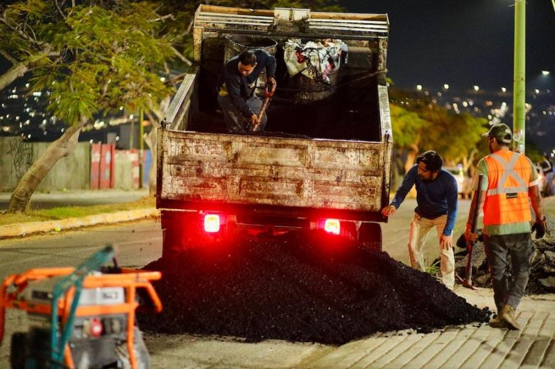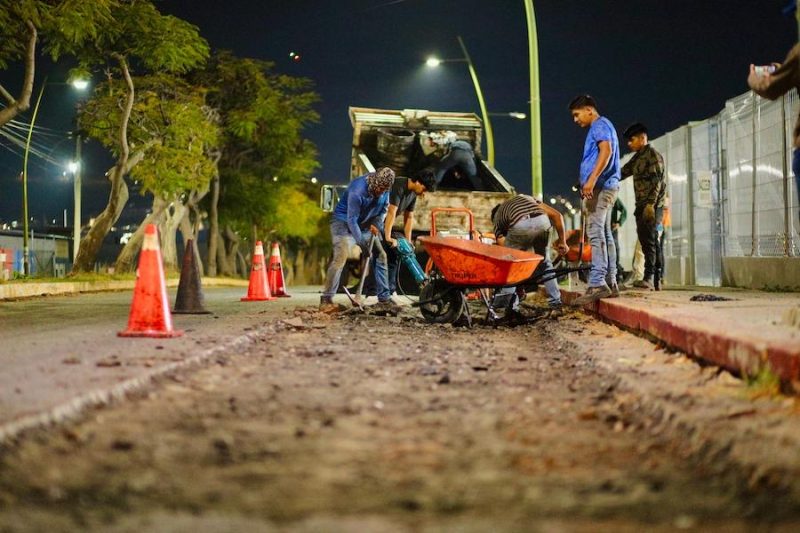 Como parte del compromiso, trabajo y resultados, el presidente Angel Torres encabezó cuadrillas nocturnas, como parte de los programas Colonias al 100 y Bacheando Tuxtla, en distintas zonas de la capital.