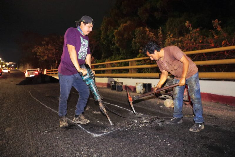 Al explicar que estas acciones se suman al bacheo permanente que se realiza de día en colonias de la capital, el alcalde capitalino reconoció el trabajo del personal de la Secretaría de Obras Públicas Municipales por mejorar la imagen urbana a través del impulso de vialidades dignas y seguras.