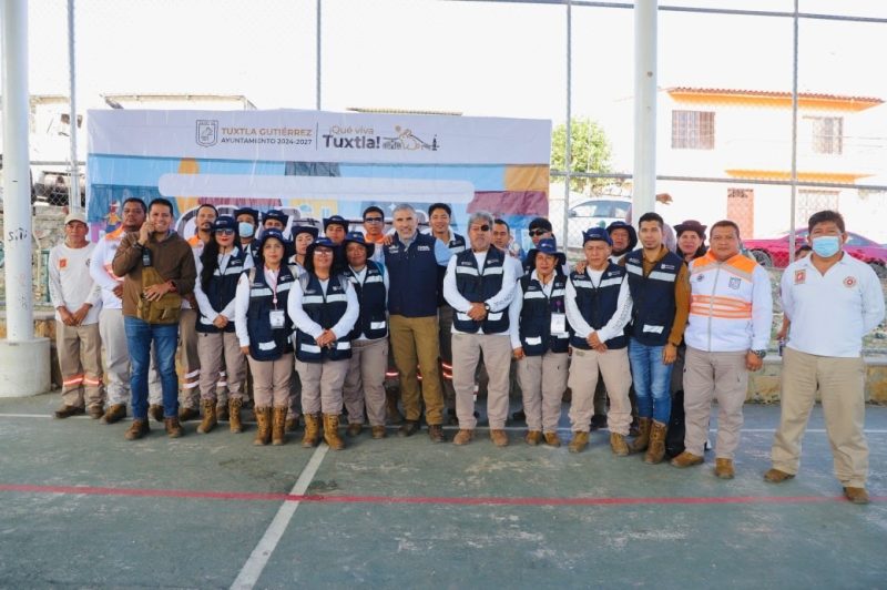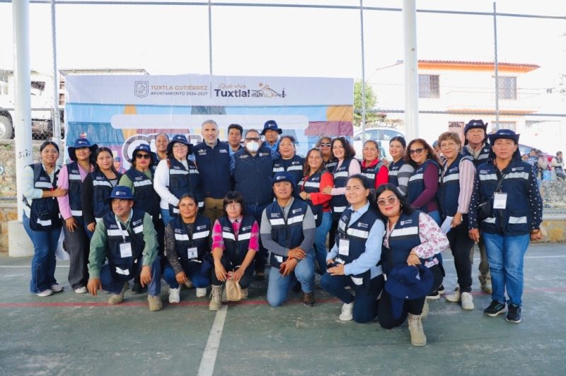 El presidente Angel Torres, junto a trabajadoras y trabajadores de las distintas dependencias municipales, encabezó una edición más del programa Chuleando Tuxtla, con acciones de limpieza, descacharrización, pintura y rehabilitación de áreas públicas, en beneficio de 27 colonias de la zona sur poniente de la capital.