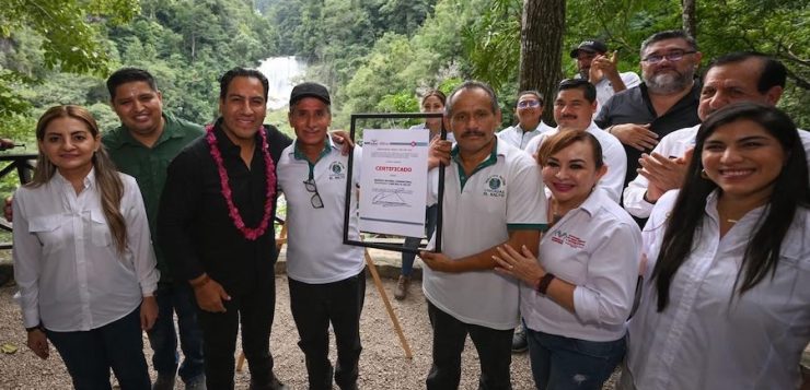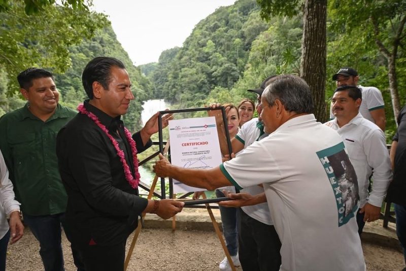 El gobernador Eduardo Ramírez Aguilar encabezó la entrega del certificado de declaratoria de Reserva Natural Comunitaria denominada Cascada El Salto, al ejido La Reforma, en el municipio de Palenque.