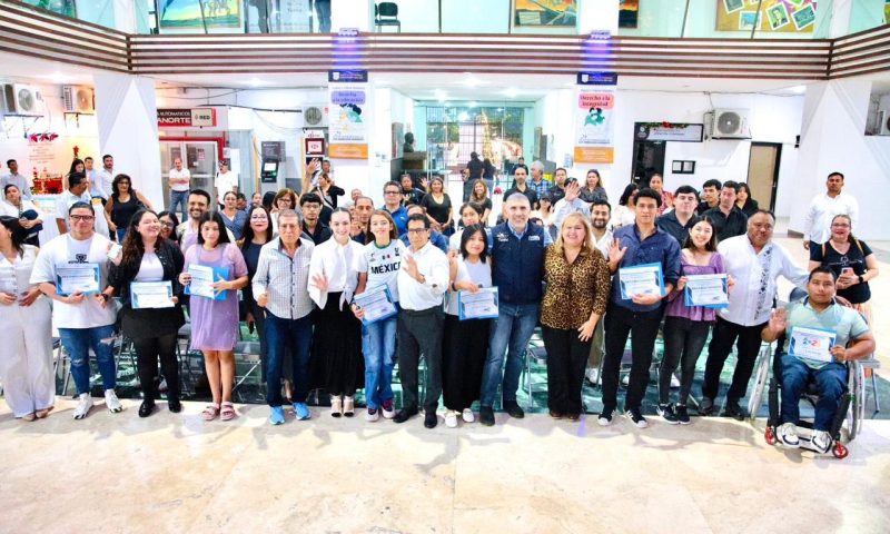 Ante la presencia de atletas, entrenadoras, entrenadores y promotores deportivos, el presidente Angel Torres, junto al director del Instituto del Deporte Tuxtleco, Manuel Martínez, encabezó la entrega del Premio Municipal del Deporte 5ª Edición 2025, en el patio de presidencia municipal.
