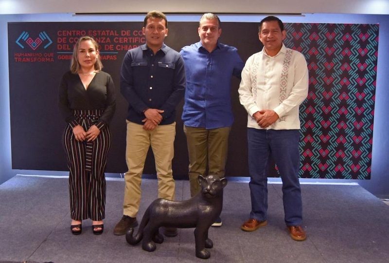En cumplimiento a la política de fortalecimiento institucional en materia de seguridad, el presidente municipal de Tapachula, Yamil Melgar Bravo, participó junto al director general del Centro Estatal de Control y Confianza Certificado del Estado de Chiapas, José Alonso Llaven Villarreal, en la firma del Convenio de Coordinación entre el Centro Estatal de Control y Confianza y el Ayuntamiento de Tapachula.