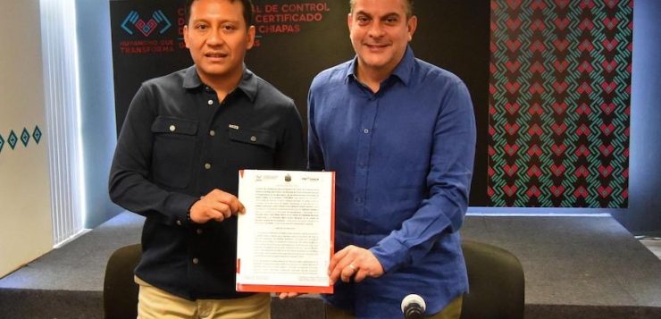 En cumplimiento a la política de fortalecimiento institucional en materia de seguridad, el presidente municipal de Tapachula, Yamil Melgar Bravo, participó junto al director general del Centro Estatal de Control y Confianza Certificado del Estado de Chiapas, José Alonso Llaven Villarreal, en la firma del Convenio de Coordinación entre el Centro Estatal de Control y Confianza y el Ayuntamiento de Tapachula.