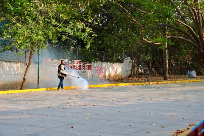 El Ayuntamiento de Tuxtla, a través de la Secretaría de Salud Municipal, realizó trabajos de fumigación en el Parque de la Mujer Soldado, como parte de las acciones en espacios públicos para prevenir enfermedades transmitidas por el vector del zika, dengue y chikungunya.