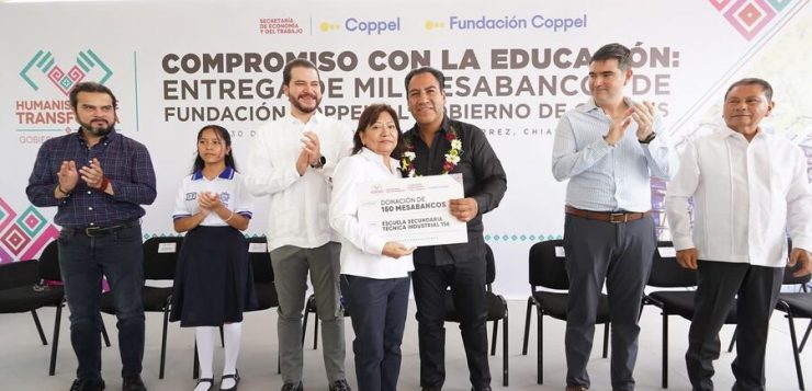 Con el propósito de fortalecer la infraestructura escolar y garantizar a niñas, niños y adolescentes espacios dignos para su aprendizaje, el Gobierno del Estado de Chiapas, en coordinación con Fundación Coppel, entregó mil mesabancos a 10 escuelas públicas de nivel básico en Tuxtla Gutiérrez.