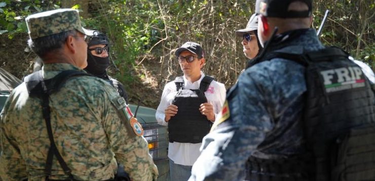Asimismo, se informa que como resultado del operativo, se efectuó la detención de cuatro personas del sexo masculino, el aseguramiento de diversas armas, cargadores, ropa táctica y vehículos.