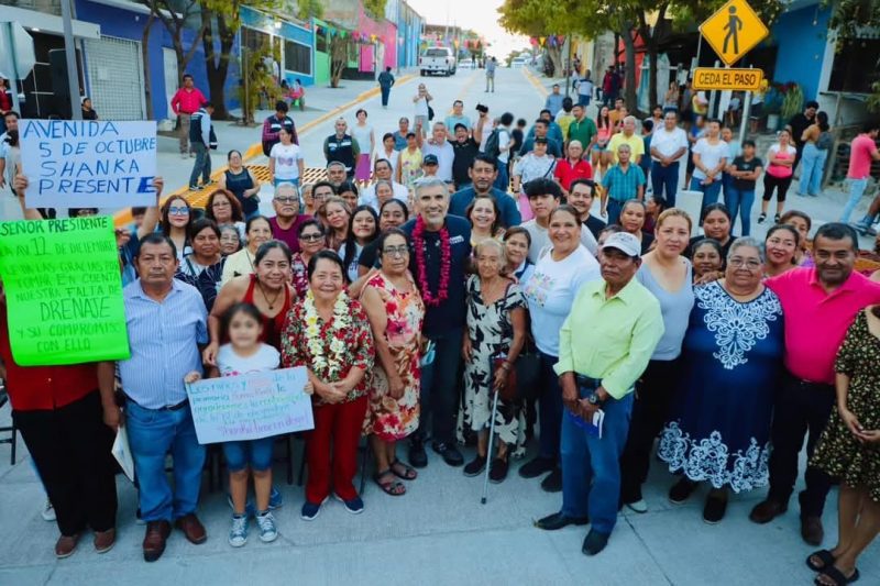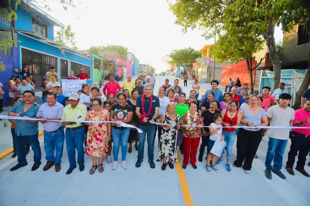 El presidente municipal Angel Torres, junto a vecinas y vecinos, inauguró la pavimentación de la Avenida 12 de Diciembre, entre las calles 3 de Mayo y General Absalón Castellanos Domínguez, en la colonia Linda Vista Shanká, como parte del Programa Calles Felices.