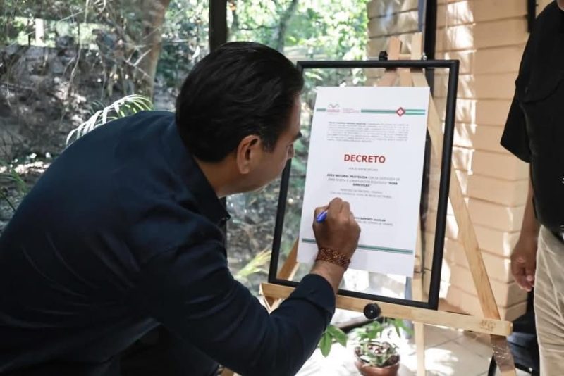 El gobernador Eduardo Ramírez Aguilar encabezó la firma del Decreto de Declaratoria de Área Natural Protegida (ANP), con la categoría de Zona Sujeta a Conservación Ecológica, para 463.82 hectáreas de la superficie denominada “Mina Banderas”, en el municipio de Pantepec.