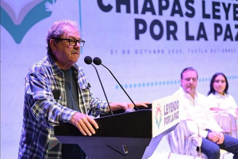 El gobernador Eduardo Ramírez Aguilar, junto al director general del Fondo de Cultura Económica (FCE), Paco Ignacio Taibo II, encabezó el lanzamiento del programa Chiapas Leyendo por la Paz, acompañado de la entrega simbólica de libros y la puesta en marcha del Librobús.