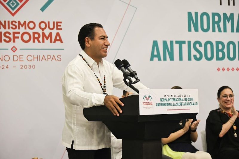 “Someternos a la normatividad internacional ISO 37001 es muy importante para nuestro gobierno. Iniciamos con la Secretaría de Salud, pero avanzaremos a otras dependencias como la Secretaría de Infraestructura, porque es una instancia donde se manejan recursos y se llevan a cabo adquisiciones y licitaciones. Estoy convencido de que en esta época nos toca hacer lo que nos corresponde para cambiar las cosas en Chiapas y México”, expresó.