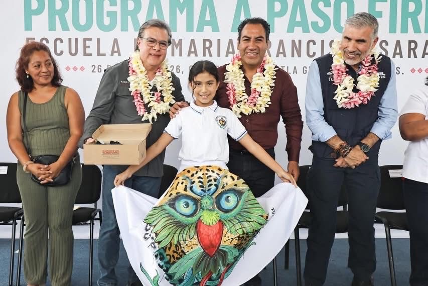 Más tarde, encabezó la entrega de apoyos del programa A Paso Firme a estudiantes de la Escuela Primaria Francisco Sarabia, en la colonia El Jobo, donde afirmó que su administración refrenda el respeto y el compromiso con el pueblo de Chiapas mediante iniciativas de carácter humanista que impulsan el bienestar y la prosperidad. Asimismo, exhortó a madres y padres de familia a acompañar a sus hijas e hijos en la construcción de sus metas.