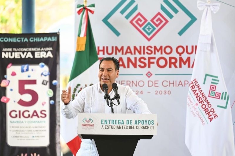 El secretario del Humanismo, Paco Chacón, enfatizó que la presencia del gobernador da cumplimiento al compromiso previamente asumido con el alumnado de este plantel, al hacer entrega de los dispositivos como parte del programa Conecta Chiapas.