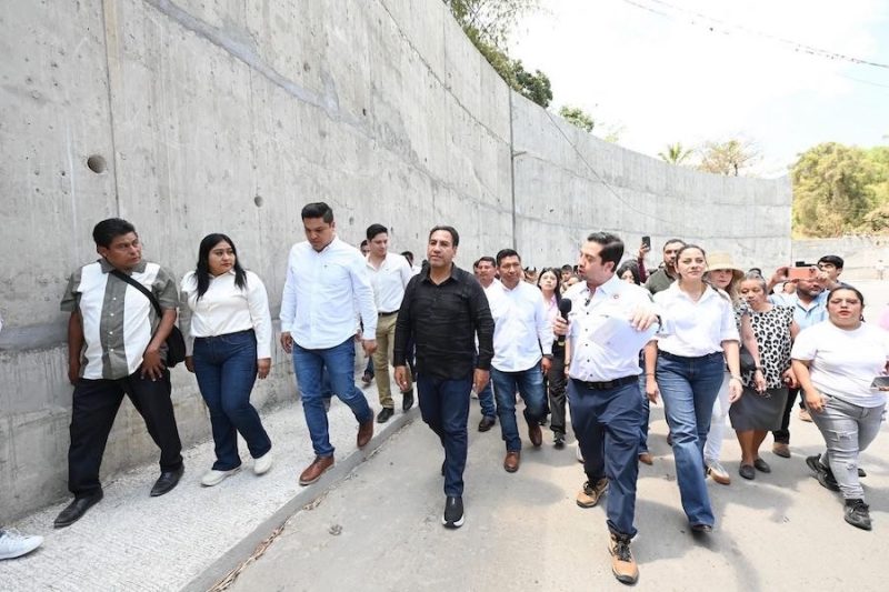Posteriormente, en el municipio de Bochil, entregó el muro de contención para la reducción de riesgos por deslizamiento de laderas, una obra de protección civil en la que se invirtieron más de 17.3 millones de pesos y que favorece a 14 mil 200 personas de distintos municipios. Más tarde se trasladó a la localidad Tierra Colorada, donde inauguró el sistema de alcantarillado sanitario, infraestructura a la que se destinaron 18.3 millones de pesos y que permitirá mejorar la calidad de vida de más de mil habitantes.