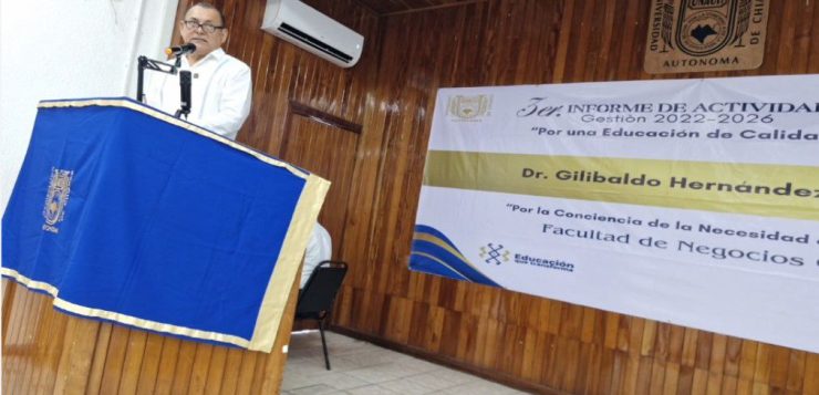 Tapachula.- Rindió su 3er. Informe de Actividades académico-administrativas 2022-2026, el director de la Facultad de Negocios Campus IV, de la Benemérita Universidad Autónoma de Chiapas, Gilibaldo Hernández Cruz, el cual refleja el trabajo, los avances y los logros alcanzados en favor de la unidad académica.