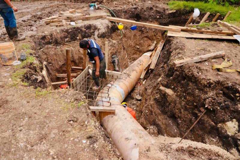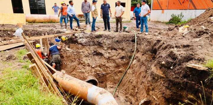 El presidente municipal de Tuxtla Gutiérrez Angel Torres, junto al Director General del SMAPA, Juan Luis Paniagua, constató la reparación de fuga en tubería de 30 pulgadas de diámetro de agua potable en la colonia 24 de Junio.