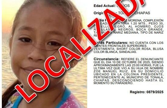“La Fiscalía General del Estado presentó a la niña de identidad reservada, que se encontraba en calidad de persona no localizada en el municipio de Tonalá, lo cual se logró a través de las acciones de investigación conforme al Protocolo de Actuación correspondiente”, indica el reporte de la FGE Chiapas, emitido momentos después del júbilo que provocó la noticia de que la pequeña estaba sana y salva.